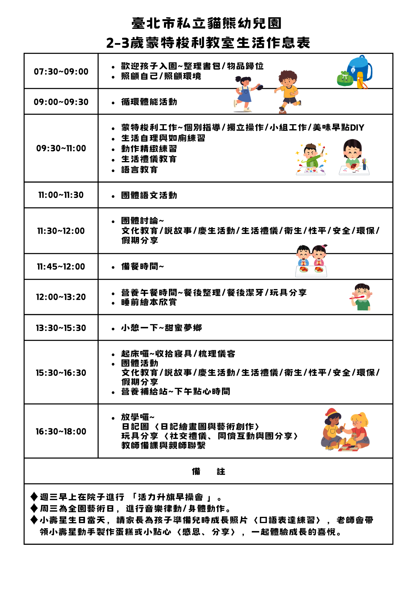 3-6歲教室作息
